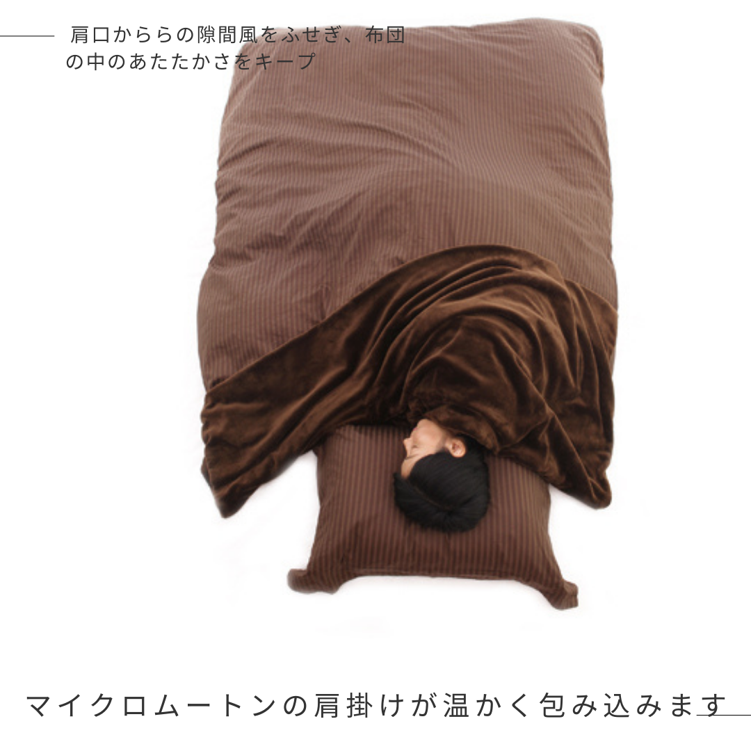 肩口からの冷たい空気を防ぎ、布団の中の温かさを保ちます
